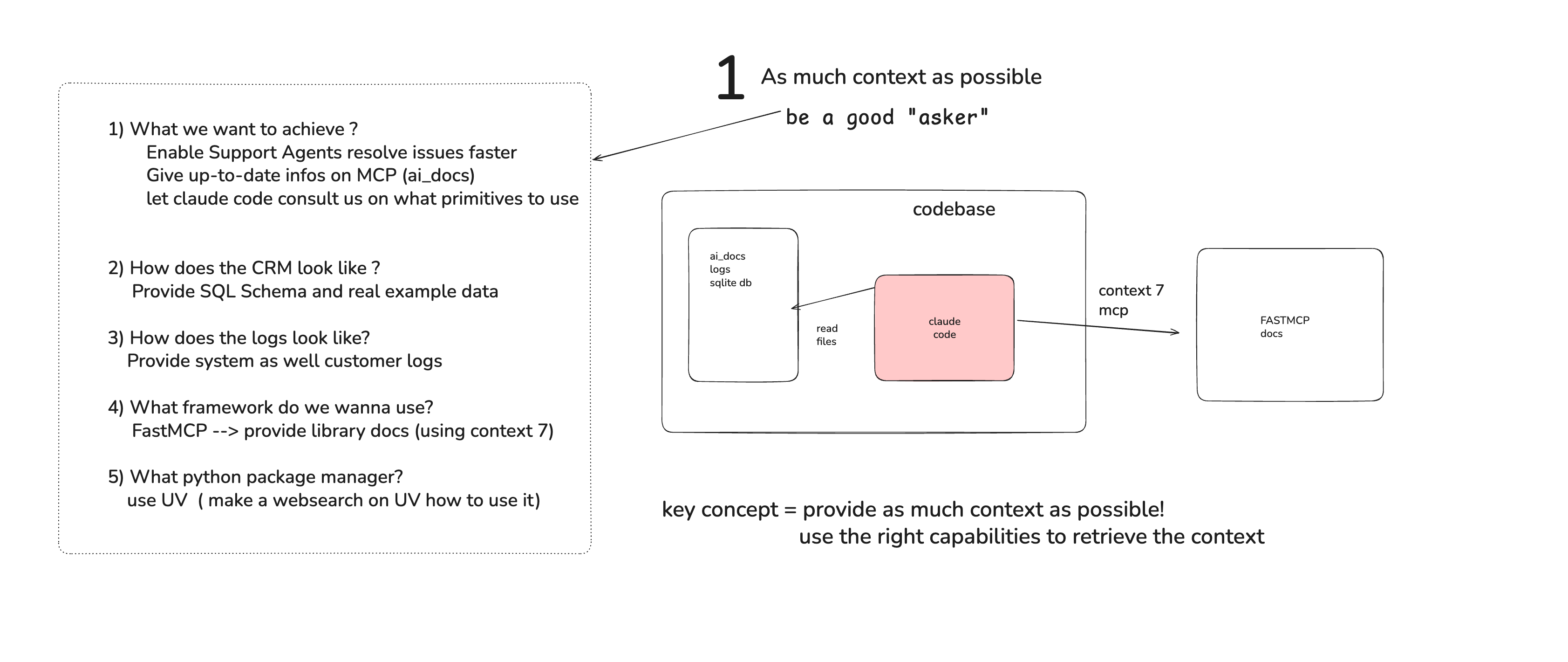This phase is the most important—if you do well here, the following two phases become much easier. The key insight is to be crystal clear about your goal and gather comprehensive context information.